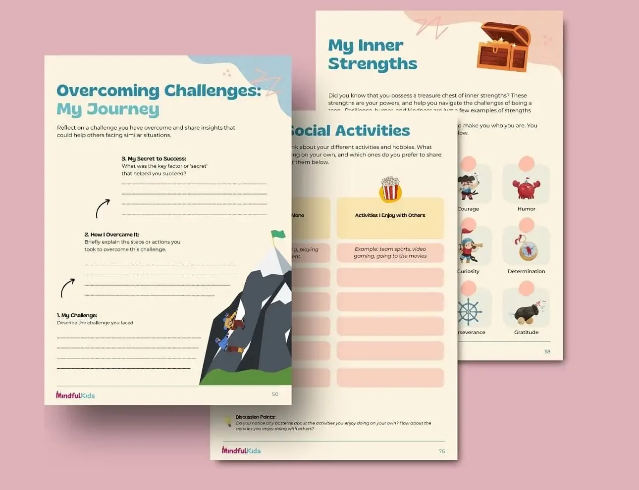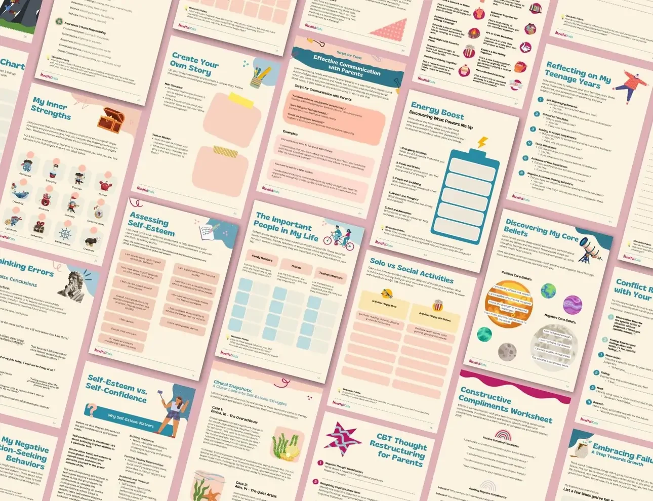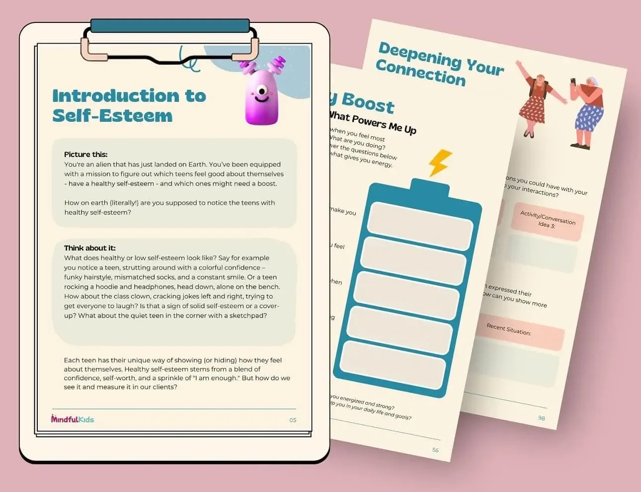 ”Tehokkaat mindfulness- ja CBT-työlehdet, jotka auttavat lapsia tunnistamaan ja säätelemään tunteita – sopii erinomaisesti terapiaistuntoihin.”