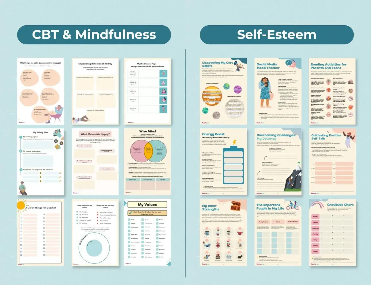 “Effective mindfulness and CBT worksheets that help kids recognize and regulate emotions — great for therapy sessions.”