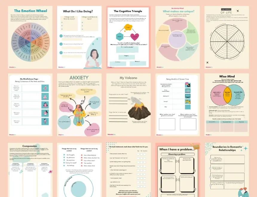 Du får tonårsfokuserade KBT-övningskort, djupgående reflektionsarbetsblad, målsättningsverktyg och en guidad dagbok. Tonåringar lär sig att identifiera tankemönster, öva på copingfärdigheter och spåra framsteg över tid.